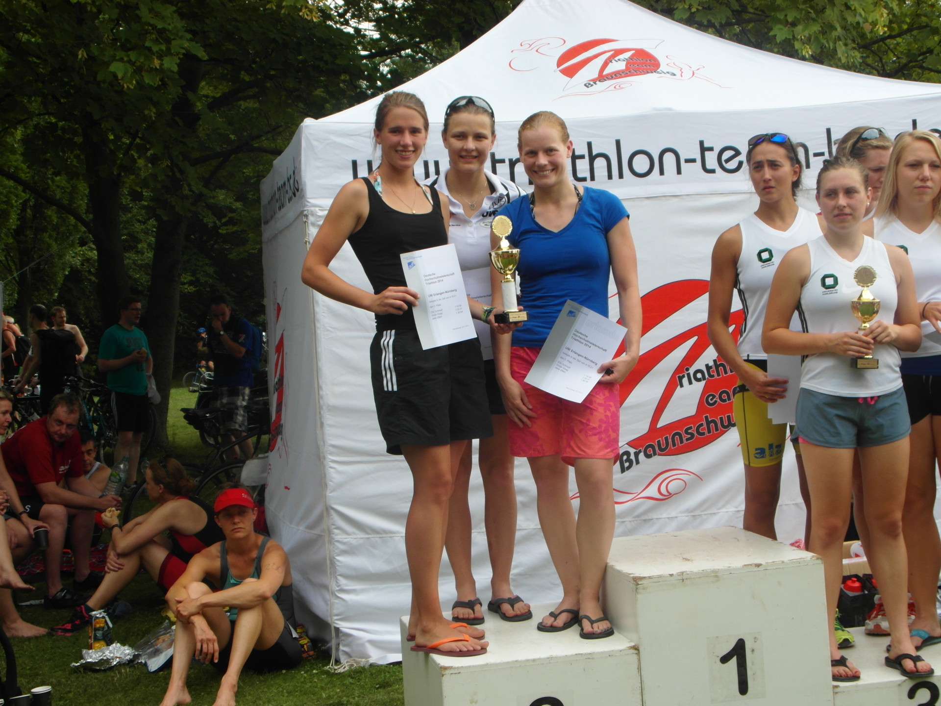 Am vergangenen Wochenende fanden in Braunschweig die Hochschulmeisterschaften im Triathlon statt. Bei Temperaturen um die 30 °C wurden zunächst 800 m im warmen Heidbergsee geschwommen, dann ging es auf eine 23 km lange, flache bis wellige Radstrecke, gefolgt von einem 5 km Lauf auf dem hügeligen Gelände rund um den Heidbergsee. Die Uni Erlangen-Nürnberg trat mit drei Starterinnen an.