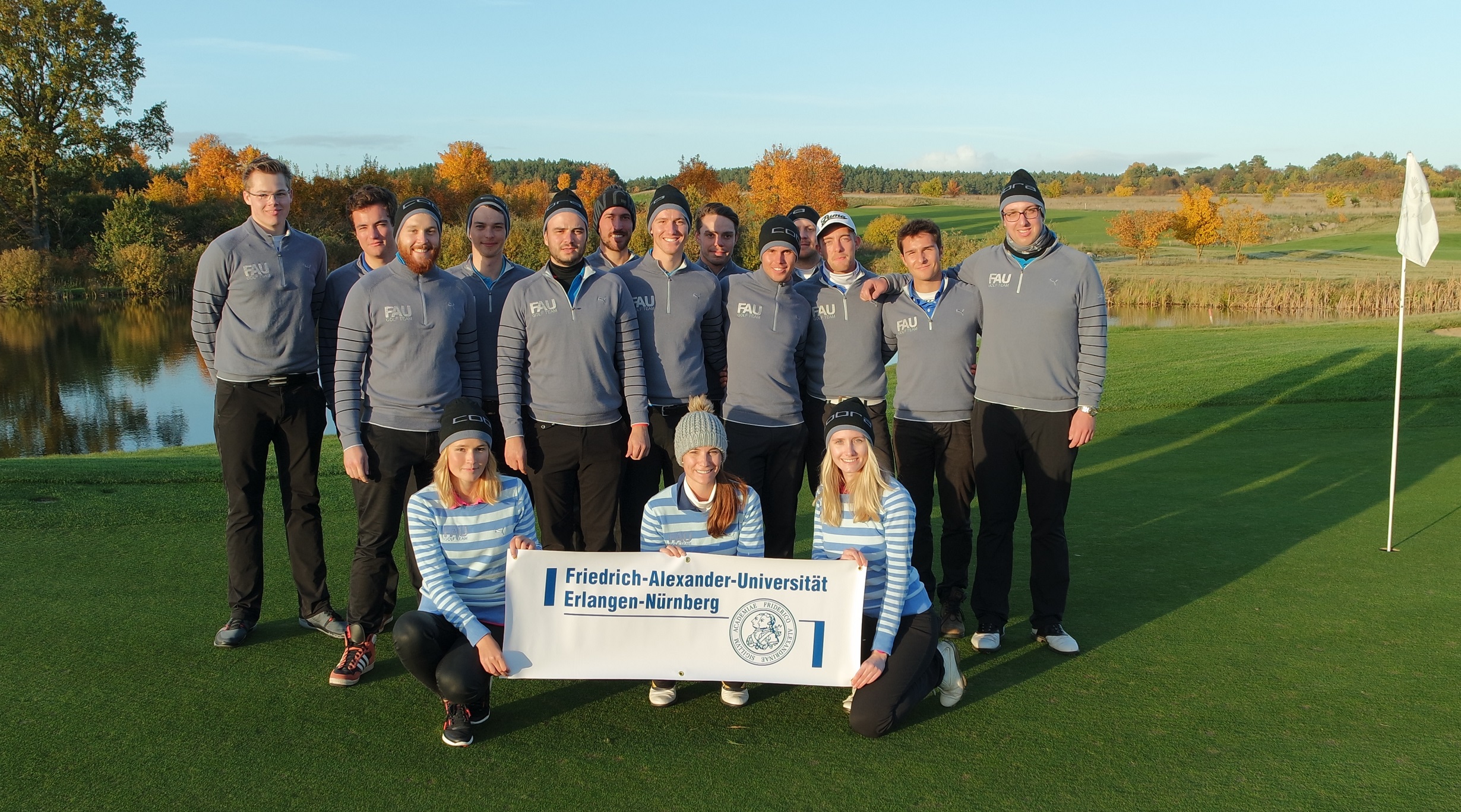 Das Team der FAU startete unter Kapitän Udo Volland mit insgesamt 16 Spielern, welche sich auf 4 Teams aufteilten (stärkste Teilnehmerzahl aller Unis!). So eine große Beteiligung gab es seitens der FAU noch nie und somit wurde der Rekord von 8 Spielern aus 2014 verdoppelt. Dies zeigt die Begeisterung für diesen Sport und Verbundenheit zur eigenen Universität. Unsere Mannschaft bestand dieses Jahr aus mehreren 1. und 2. Bundesliga Spielerinnen und Spielern sowie weiteren ambitionierten Golfern. Speziell der GC am Reichswald sowie der GC Herzogenaurach waren stark vertreten. Als Mindestziel gab der Kapitän eine Top-5 Platzierung im Team und im Einzel aus. Bei einem so hochkarätigem Starterfeld, gespickt mit mehreren langjährigen Nationalspielern und früheren USA-University Spielern, kein leichtes Unterfangen. Nach zwei unglaublich spannenden Wettspieltagen erreichte das Team 1 um den Bayerischen Meister, Marc-André Gehr, Nicola Rössler, Alexander Elsner und Marco Dietrich einen sensationellen 2. Platz und ist somit Vize-Hochschulmeister 2015! Einzig die WG München war besser. Der bislang größte Erfolg eines Teams der FAU bei der DHM Golf seit Bestehen der FAU-Golfmannschaft.