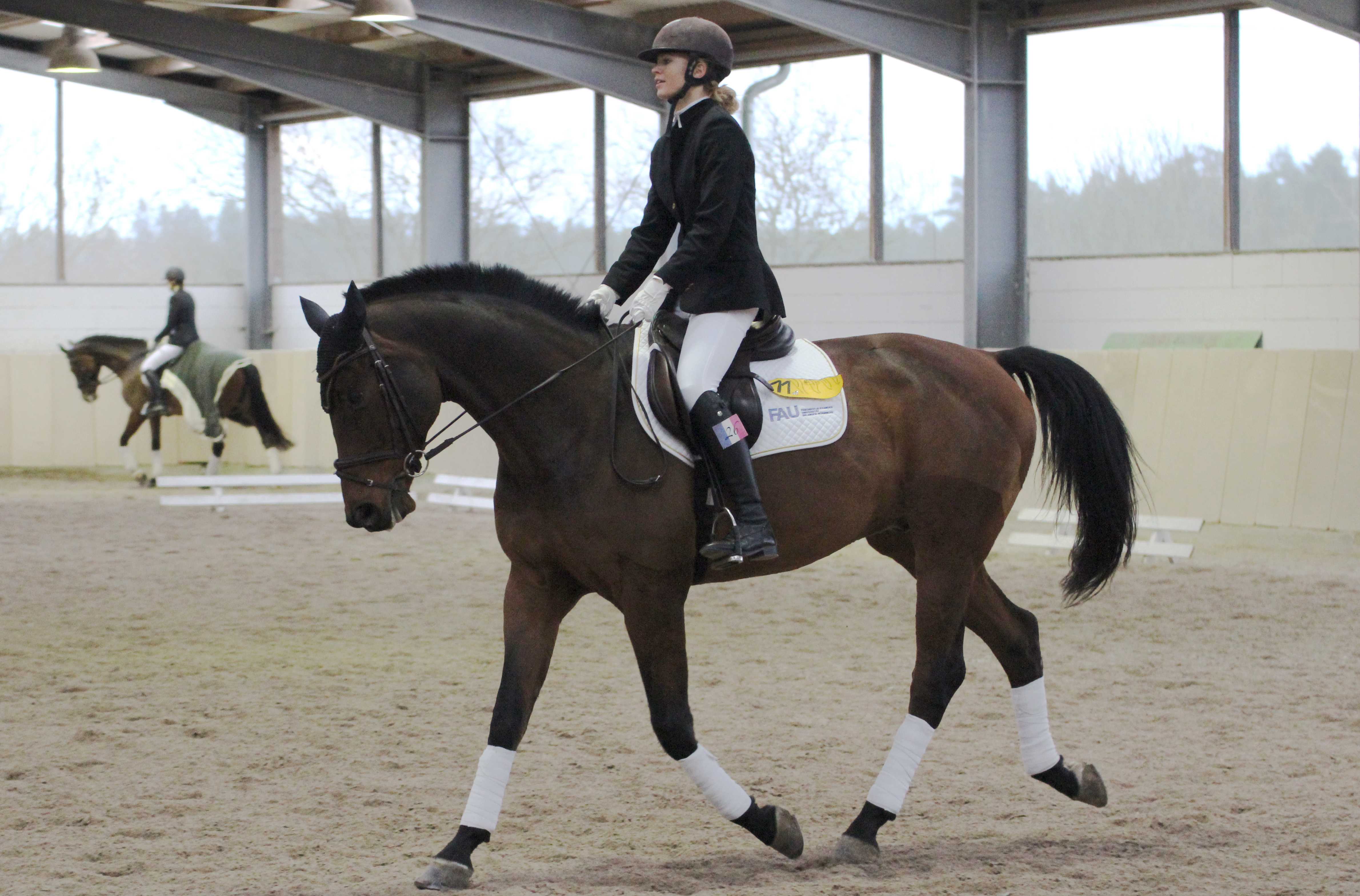 Die Teams, bestehend aus je drei Reitern, haben sich im KO-System in den Disziplinen Dressur und Springen von der Klasse A bis M auf fremden, zur Verfügung gestellten Pferden gemessen. Es gab tollen und fairen Sport zu sehen. Die Dressur konnte in einem spannenden Finale Anne Mellinghoff vom Team Ulm für sich entscheiden. Auf den zweiten Platz ritt Dorothe Rüster aus München und auf dem dritten Rang platzierte sich Julia Dyckow aus Ilmenau. Im Springen erritt sich Marcella Oberst aus München den Sieg, gefolgt von Lisa Planck aus Tübingen und Veronika Müller aus Augsburg.