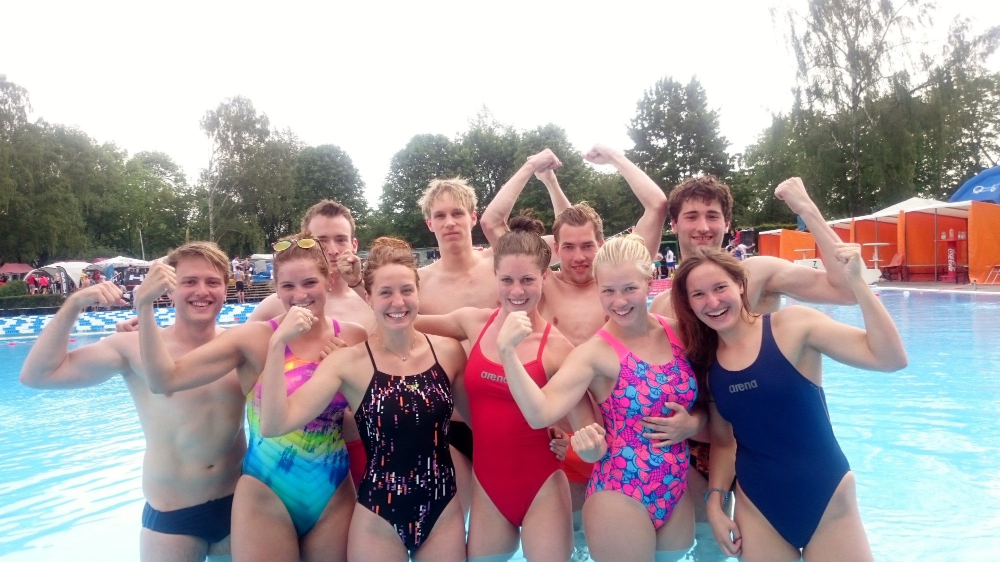 Besonders groß war die Freude und Überraschung der Studentinnen über 4x100m Freistil der Frauen. Völlig unerwartet konnten die italienische Erasmus Studentin Alessia Prest, Teresa Kraus, Svenja Zihsler und Daniela Karst die Silbermedaille holen. Auch die anderen Staffeln wurden mit adh-Anstecknadeln belohnt: die 6x50m Bruststaffel in der Besetzung Georg Melzer, Alexander Sinn, Julian Richter, Karen Melzer, Alessia Prest und Daniela Karst konnte sich ebenso wie die 8x50m Lagen Staffel (Schorr, Kraus, Melzer, Prest, Richter, Karst, Tim Maiwald, Zihsler) den dritten Rang sichern.