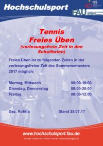 Übungszeiten TENNIS in der vorlesungsfreien Zeit Sommersemester 2017