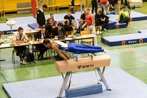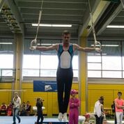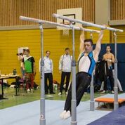 Nach dem vorjährigen Sieg im adh-Cup der Männer, stellte sich das Team um Kai Meister, Julian Graf, Leandro Eckstein, Jan Lederer und Matthias Mayer einer neuen Herausforderung. Sie nahmen in diesem Jahr bei den Deutschen Hochschulmeisterschaften teil, bei denen nach offiziellem Code de Pointage geturnt wird. Das Team der FAU startete schon am Freitag um 16 Uhr in den Wettkampf. Das Startgerät war das Pauschenpferd. Hier konnte Zweitligaturner Jan Lederer zwar seine schwierige Übung durchturnen, blieb aber mit 10,7 Punkten unter seinen Erwartungen ;). Nachdem das Zittergerät Pauschenpferd überstanden war, kam der FAU-Express ins Rollen. Mit einer sauberen Übung an den Ringen konnte sich Matthias Mayer für einen Finalplatz bei den Gerätefinals qualifizieren. Besonders sehenswert waren die Darbietungen von Kai Meister, Julian Graf und Leandro Eckstein am Barren. Alle drei turnten ihre Übungen fehlerfrei durch und wurden mit hohen Punktzahlen belohnt. An den letzten drei Geräten Reck, Boden und Sprung konnte die Mannschaft durch fehlerfreie Übungen weitere wichtige Punkte sammeln. Somit konnten sich die Männer und die mitgereisten Fans über einen 6. Platz an den Hochschulmeisterschaften freuen. Gewonnen hat das Team der WG München vor der WG Köln und der WG Stuttgart. Durch einen fehlerfreien Wettkampf wurde Kai Meister mit 67,950 Punkten mit dem 11. Platz in der Einzelwertung belohnt.