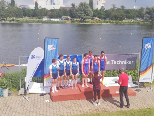 Unsere Ruderer hatten es wegen der Corona-Beschränkungen sehnsüchtig erwartet, endlich wieder auf Regatten gehen zu können und am letzten Wochenende war es endlich wieder so weit: am 10. und 11. Juli fand die 73. Deutsche Hochschulmeisterschaft im Rudern – als Tripelmeisterschaft zusammen mit den offenen deutschen Masters Meisterschaften und den deutschen Großbootmeisterschafen in Krefeld an der Regattastrecke am Elfrater See statt.